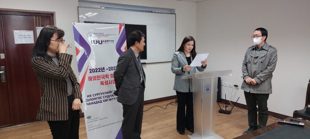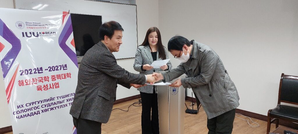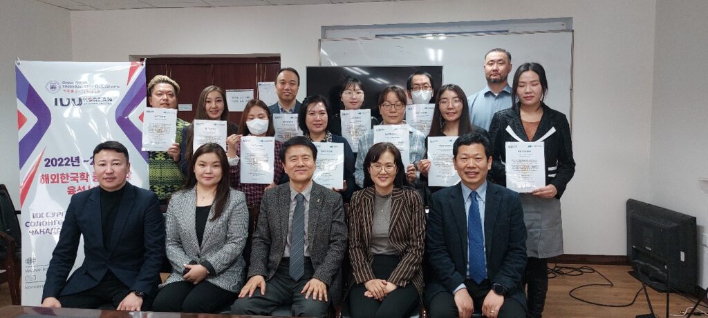 국제울란바타르대학교는 2023년 3월 4일(토), 해외 한국학 중핵대학 육성사업 일환으로 국제지역학 한국학전공 12명의 대학원생(석사)들에게 장학증서를 수여하였습니다.