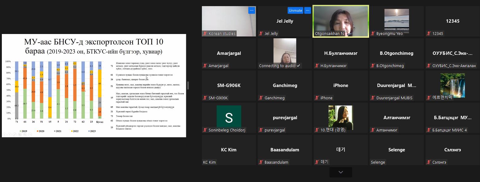 Тус семинарт МУИС, Бизнесийн сургуулийн профессор, доктор Н.Отгонсайхан “Монгол-Солонгосын эдийн засгийн түншлэлийн хэлэлцээр: бараа худалдааны жишээн дээр” болон МУИС, Улс…