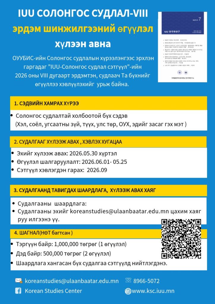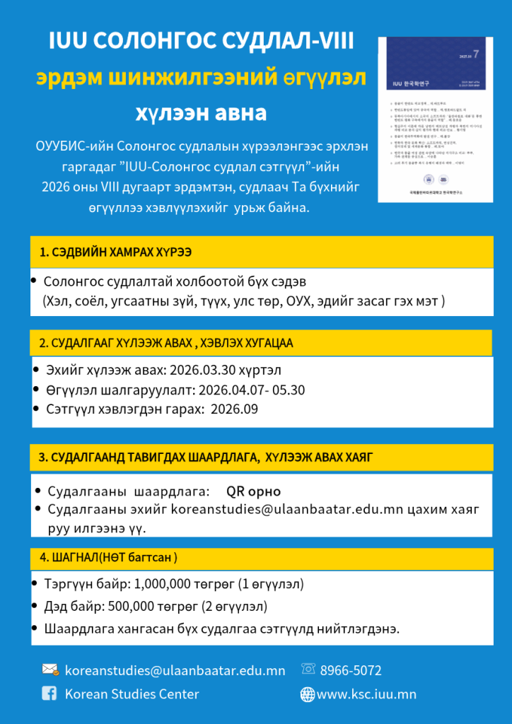 이메일: koreastudies@ulaanbaatar.edu.mn