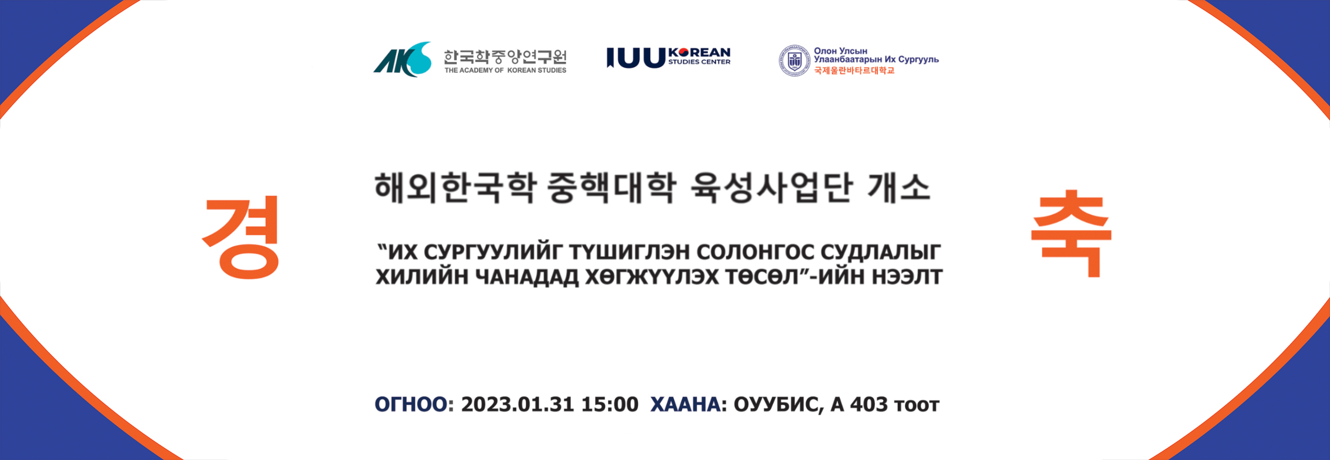 Солонгос судлалын хоёрдугаар семинарт та бүхнийг урьж байна. 2023 оны 3 дугаар сарын 15-ны өдрийн 16 цагт ОУУБИС-ийн А байрны…